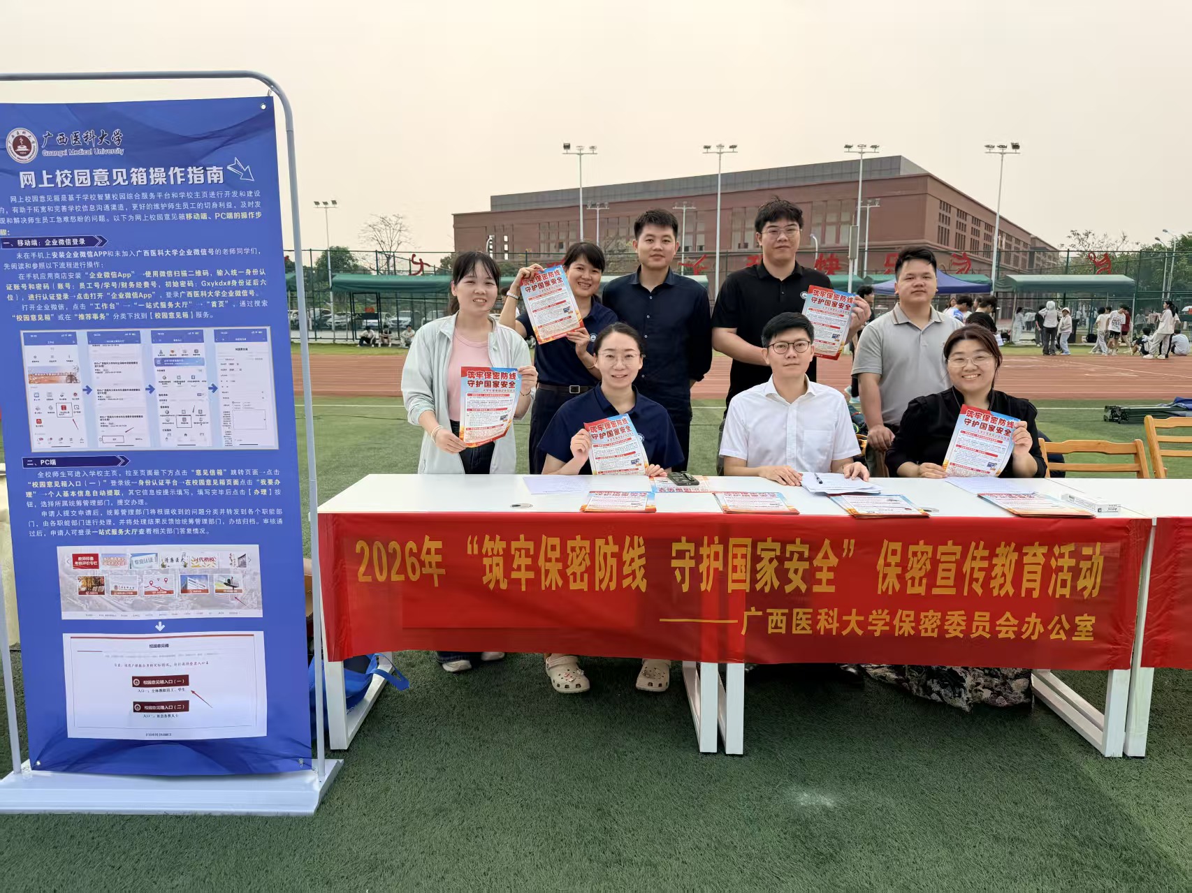 4月11日上午,在第十一个全民国家安全教育日来临之际,借着学校2026年“广西三月三·潮起在医大”铸牢中华民族共同体意识活动开幕之机,学校保密办在武鸣校区组织开展以“筑牢保密防线 守护国家安全”为主题的保密宣传教育活动。
