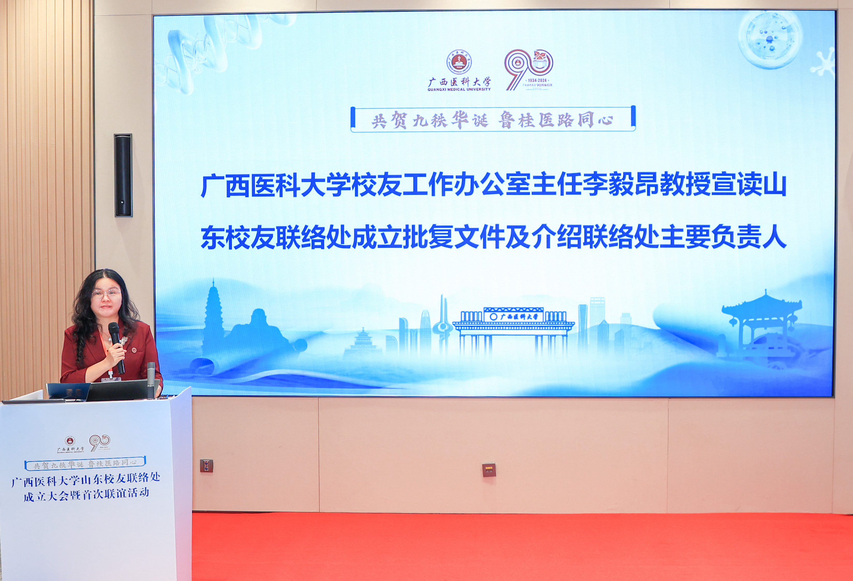 泉城秋色,红叶满城;十月如诗,邂逅浪漫。10月20日上午,广西医科大学山东校友联络处成立大会暨首次联谊活动在山东济南举行。学校副校长、校友会副会长陈兴才一行出席参加,与在山东工作的校友代表欢聚一堂,共叙情谊,共谋发展。大会由我校药学院09级校友莫丽媛主持。